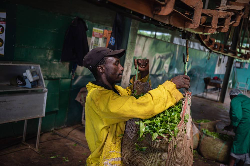 这是2023年5月4日,工人在肯尼亚首都内罗毕附近的茶厂里工作。 新华社记者 王冠森 摄