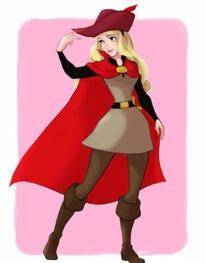爱洛公主穿上了菲利普王子的服装,深红色帽子加上鲜艳披风,显得爱洛公主整个人简约又干练。爱洛公主这个样子,有点像周游四方的游侠人物,性格属性里会充满着好奇心和冒险精神吧。