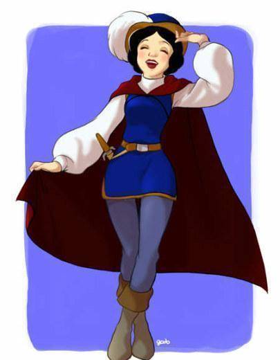 白雪公主原本是一个迷糊可爱的女孩子,完全没有防备心,反倒是充满着好奇心和善良。当白雪公主穿上王子服装之后,同样具有亲近效果,像是一个温柔可爱的邻家女孩子,做事冒失又迷糊。