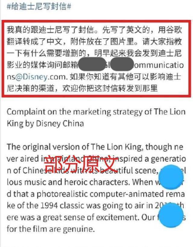 “我真的跟迪士尼写了封信,先写了英文的,然后翻译成了中文,附件放在了图片里,请大家指教一下有什么需要增删的,明早起来我会发到迪士尼影业的询问邮箱。”