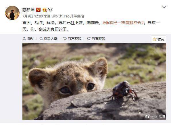有很多网友表示,《狮子王》跟蔡徐坤根本不搭边,用流量小生的模式来宣传《狮子王》让他们无法接受,甚至还有热心的网友还写了长篇的文发给了在大洋彼岸的迪士尼公司。