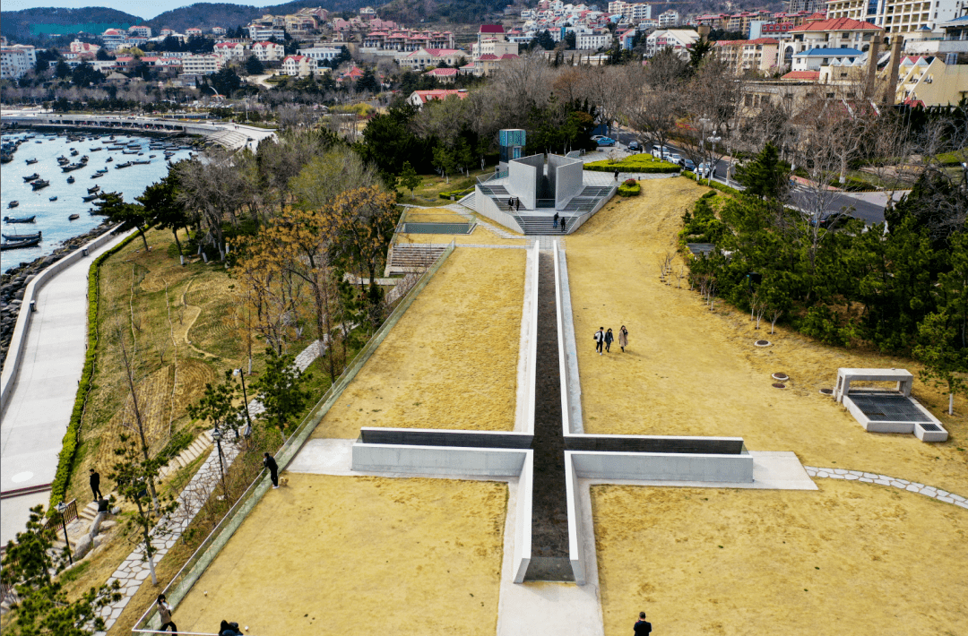 威海一战华工纪念馆位于威海最美的湾畔之一——合庆湾。作为我国首座一战华工专题纪念馆,馆里集中展示了一战时期14万华工奔赴欧洲西线战场的历史,以及他们对中国和世界历史的贡献。纪念馆建筑外形为长方形,分为东西两部分,建筑主体2/3部分嵌于地下,1/3部分面向大海,外形酷似一只远航的船,又像是一块十字型的墓碑。