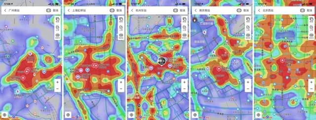 (5月1日17点左右百度地图APP交通枢纽热力图)