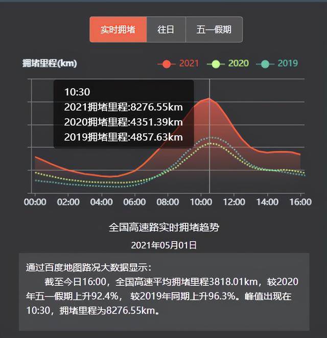 (截至5月1日16:30 百度地图出行仪表盘全国高速拥堵趋势)