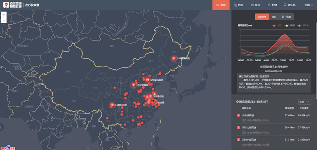 (截至5月1日16:30 百度地图出行仪表盘全国高速拥堵情况)