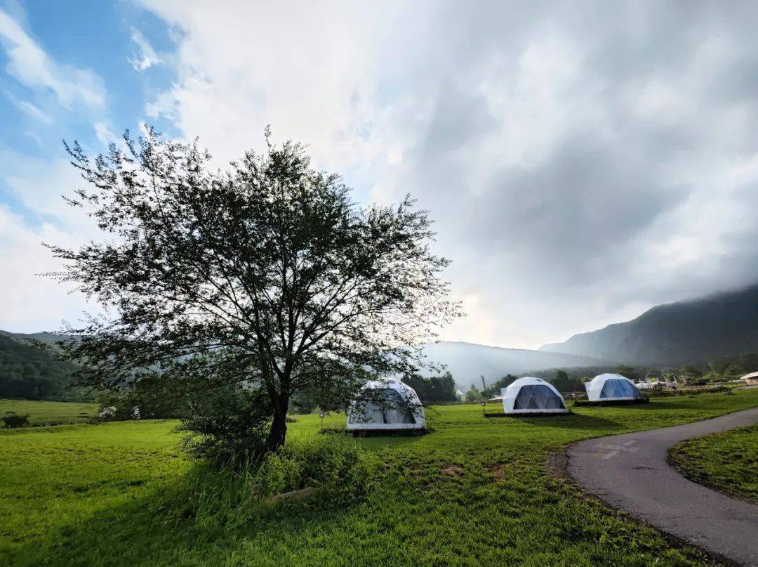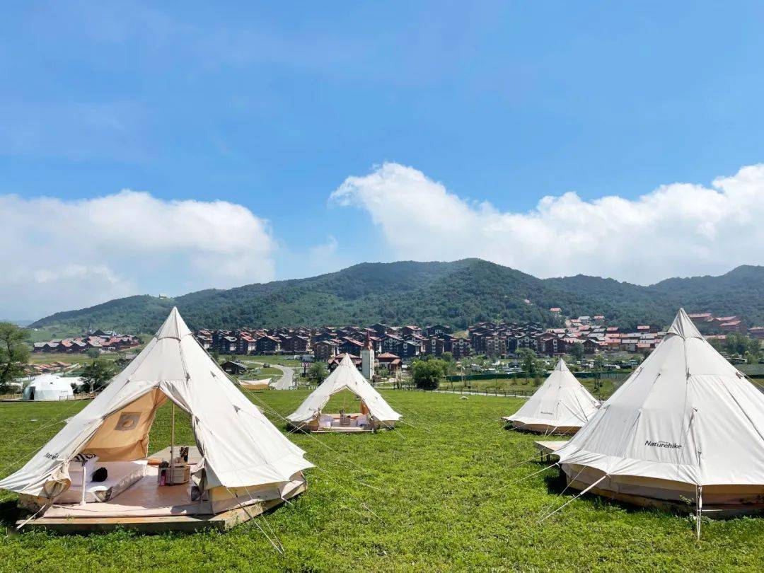 海拔1300米之上,接近天空的地方, 是夏秋两季观星露营的绝佳之选。帐篷酒店群落,分布于密林之中,草甸上的情侣相拥而坐,孩子们在帐篷前奔跑嬉戏……每一顶都有自己的故事。