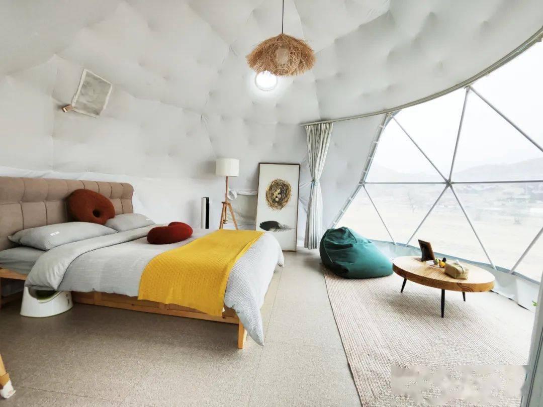 营地配置:营内配备野奢帐篷10顶圆球账篷,内设1.8米舒适大床,并准备了懒人沙发、衣架;