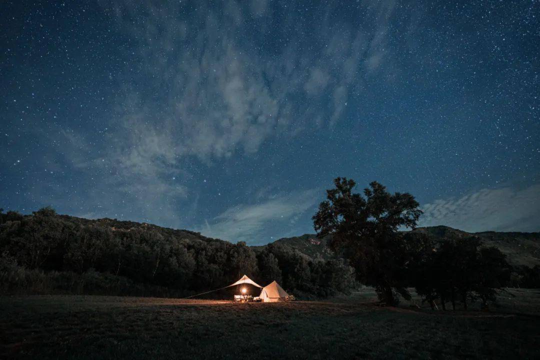 在静谧的山谷里,夜晚仰望浩瀚星空,伴着山风虫鸣入眠,度过一个别样的露营之夜。