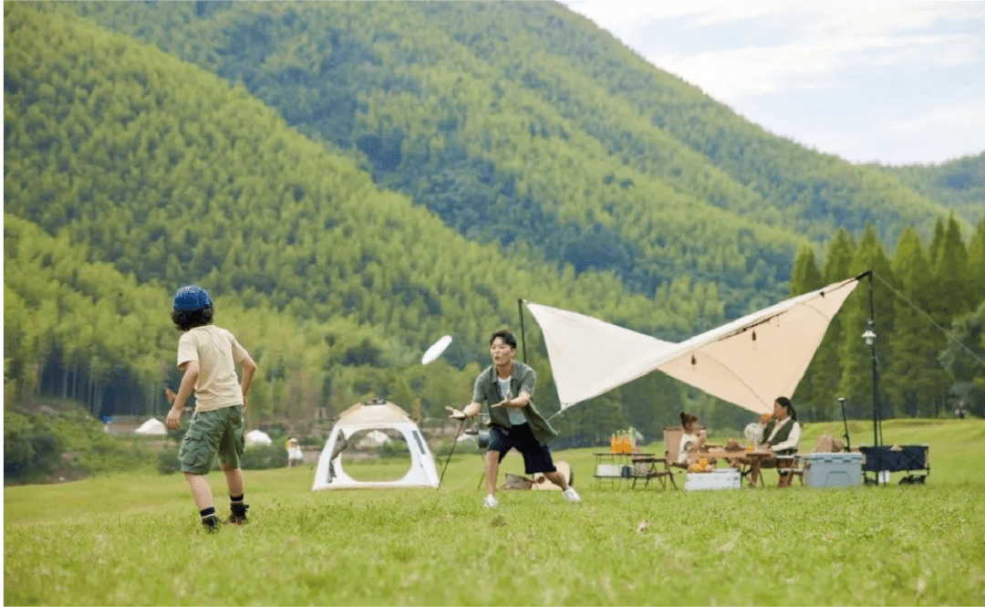 在宽敞的草坪上席地而坐,与家人一起撑起露营帐篷,铺一方网红风餐垫,品尝着妈妈亲手制作的美味。跟好友面对青山绿水,端一杯醇香的咖啡,自由畅谈、享受慢生活。