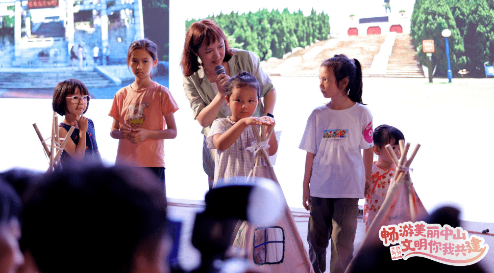 “我是文明旅游小使者,我倡议遵守秩序不喧哗……”活动中,何子冉等小朋友被聘任为中山市文明旅游宣讲员并现场发出倡导。