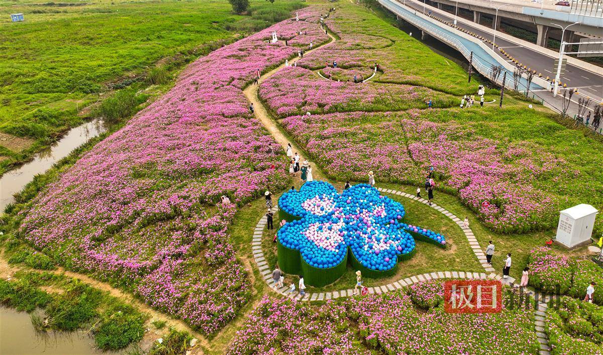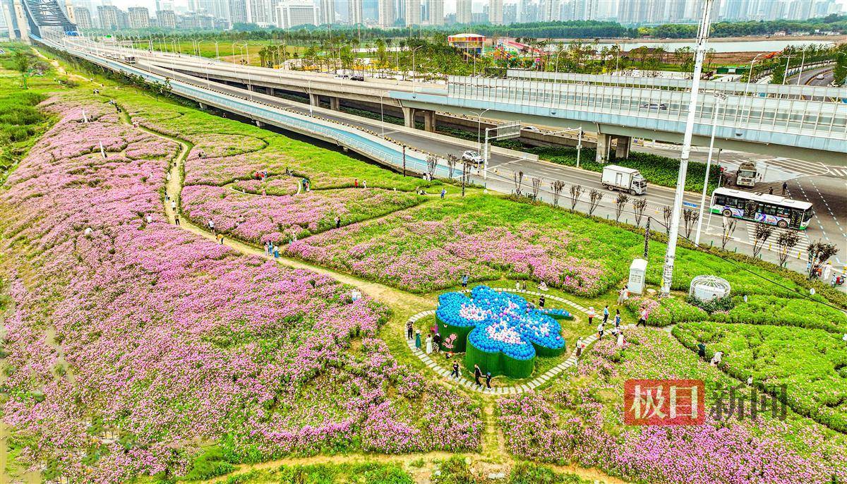 5月21日,汉江湾桥汉阳桥头西侧,2万平方米正在绽放的波斯菊,吸引了不少市民专程前往打卡拍照。桥头东侧,玫瑰体育公园正在试运营,总建设面积33万平方米的玫瑰体育公园目前开放了一期园区,包括足球场、步道等体育场所和为儿童设计的无动力乐园,每到晚上,热闹非凡。