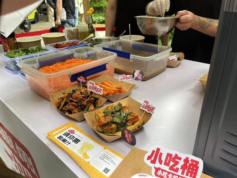 不止这一处装置。沿着南昌路从茂名南路口往瑞金一路口走,沿途能看到好些美食店铺“出摊”,除了南昌路上的店铺,还有来自襄阳北路、永康路、延平路、乌鲁木齐路上的知名小店。据小红书社区部美食运营负责人小鹿介绍,“我们是先选路再选店,这条路必须好吃又好逛。”入选的五条马路都有“代表性味道”,“比如永康路就是咖啡味。”