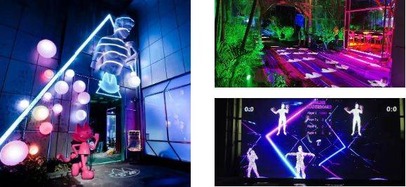 集市现场呈现的只是“雷猴猫”潮玩IP的静态形象之一,在环宇文化创意园区雷猴猫潮玩体验空间中,游客可以感受AR/VR技术、声光水火电等特效、数字和艺术特效装置,沉浸式的体验数字互娱光影世界的多感官欢乐旅程。