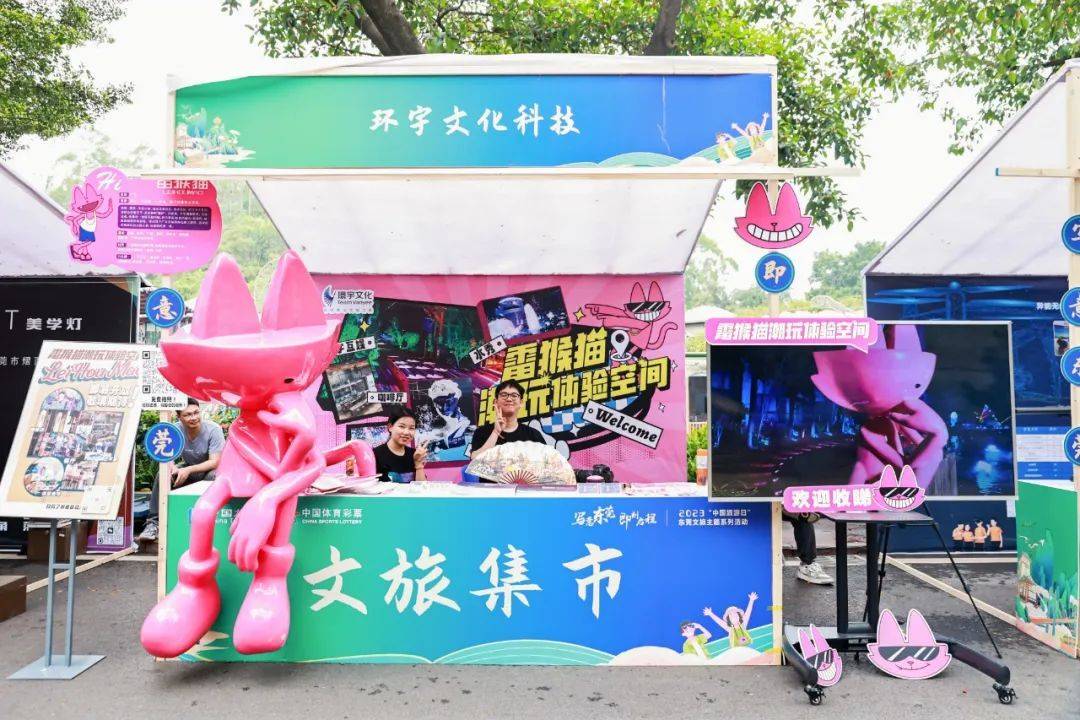 为加快东莞文化强市建设,推动文化和旅游消费,市文化广电旅游体育局整合全市文化旅游资源,5月19日在常平镇隐贤山庄景区举办2023“中国旅游日”东莞文旅主题系列活动,环宇文化科技作为重点受邀企业,携自有IP雷猴猫潮玩体验空间亮相文旅集市,圈粉无数。