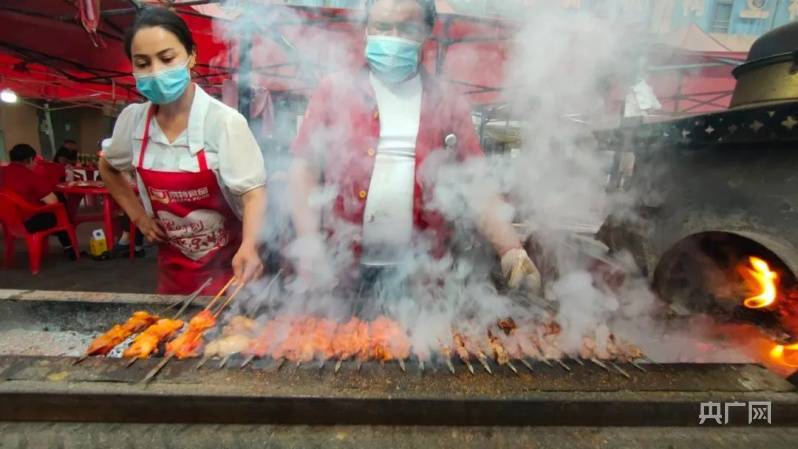 烧烤师傅正在烤制烤串 (央广网发 泽普县融媒体中心供图)