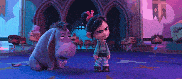 而后来主角们想要去一个最酷的地方,于是来到了“ohmyDisney”网站,进入之后就见到了以上的景象。上一部中围绕着拉尔夫的自我定位展开,大闹了许多游戏,这一次他们又将面临什么样的困难呢?