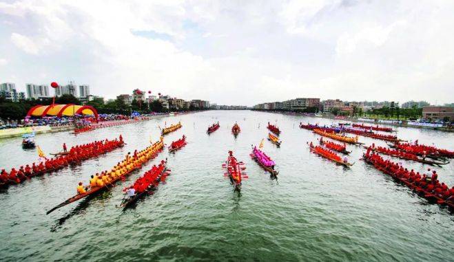 东莞的龙舟竞渡是一项传统的水上运动,通常在端午节期间举行。参赛队伍会在龙舟上载歌载舞,比赛时会发出激烈的划桨声和欢呼声。