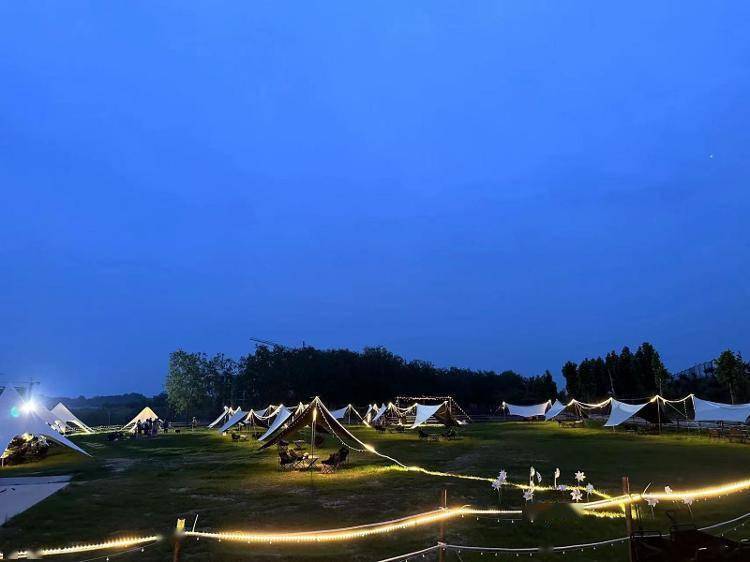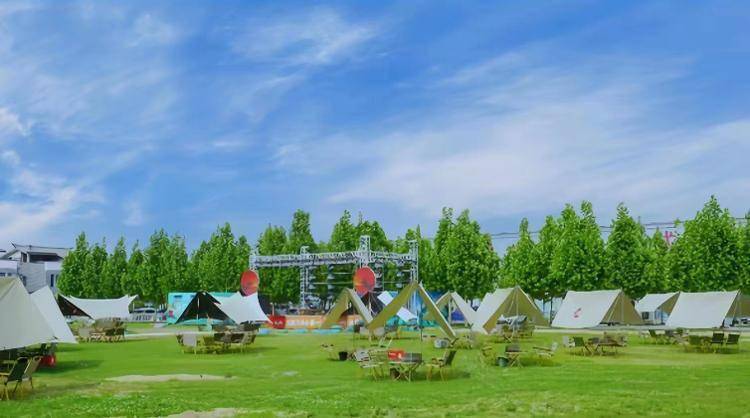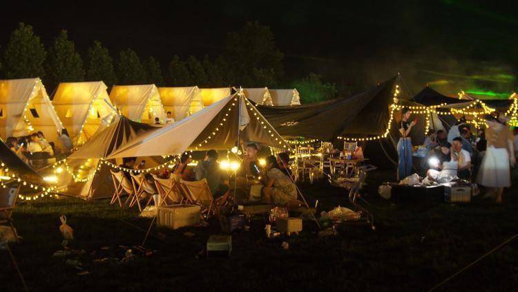 定陶汽车小镇给人的印象是赛车飞驰,风驰电掣。两家露营基地在汽车小镇安家,为小镇带来了些许静谧与闲适之气。置身于 湖边云野露营基地,被碧水绿树环绕,这里不仅有帐篷天幕,而且傍水停驻8辆房车,车体白绿相间,与自然融为一体。河边露营,空气清新、天空蔚蓝。夜幕降临,灯光舒适,音乐曼妙,与大家一起参与一场篝火晚会,不负盛夏。