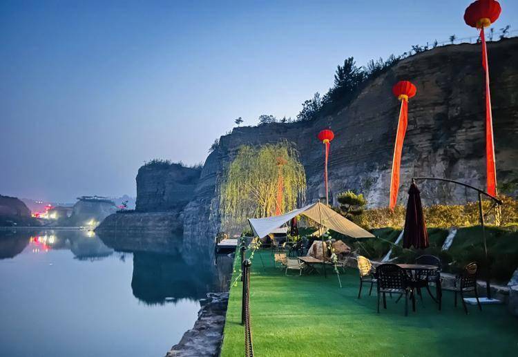 青龙山崖壁酒店坐落于巨野县青龙山景区岩壁之上,根据矿坑地势,依崖壁走向而建,山水环绕、峭壁栈道、瀑布潺潺、湖天一色,呈现出景区的生态自然之美。崖壁酒店院落与湖水相连,前院设有休闲区、露营地,露营地可容纳10个帐篷,方便游客在此进行露营集会。