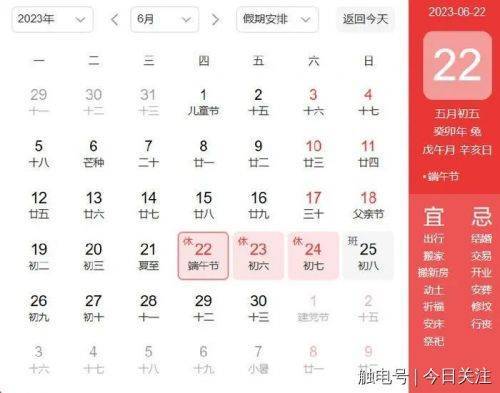 6月22日至24日放假调休,共3天