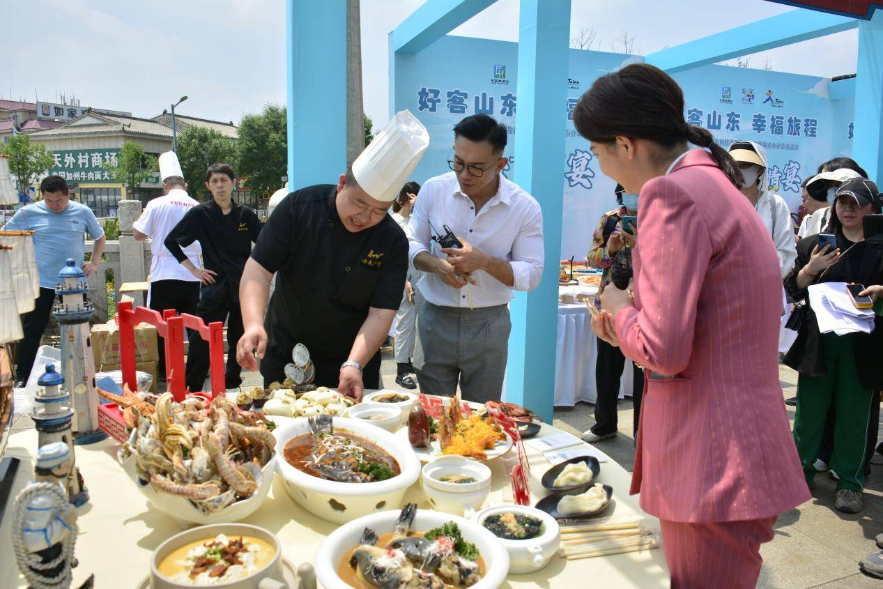 这次活动以“好客山东 幸福旅程”为主题,推出了“幸福旅程——赴好客山东盛宴”等五大系列产品,泰安、荣成、东营、聊城、济宁五家特色食品入选山东盛宴,荣成的“一桌最海鲜”是唯一一家入选的海鲜产品。海鲜荟萃、金焗对虾、海胆豆腐、鲅鱼饺子、百香果鲍鱼、清汤参花海参汤、回水咸鱼花饽饽……琳琅满目的海鲜菜品,每一道菜都透着精致,色香味俱全,引得现场游客啧啧称赞,大家争相品尝拍照,成为活动现场最繁忙打卡地,参加活动的省政府和省文旅厅领导连连称赞荣成海鲜盛宴“品质新鲜、味道鲜美、特色鲜明”。