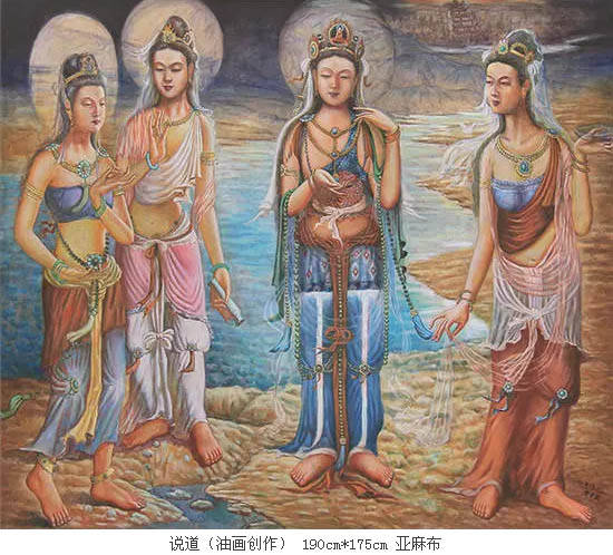 李建英画敦煌却不局限于敦煌。他的作品融合了西方绘画的特点,把光影技法巧妙地运用到敦煌绘画创作中,取得了一定的成果。这种在宣纸表现油画特点的作品既有厚重感,又不失中国画的特点,得到了美术界的一致好评。