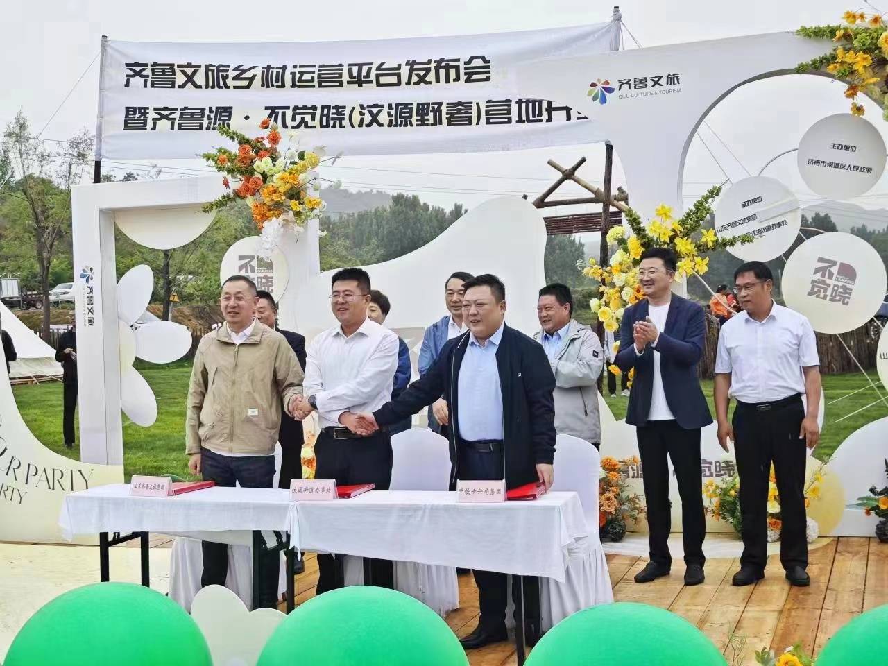 青山相依,绿水为伴,尽情感受惬意悠闲的节奏,露营成为时下盛行的休闲旅游方式。5月21日,汶源街道齐鲁源·不觉晓汶源野奢露营地开业典礼暨第十一届樱桃采摘节活动正式启动。美景、美食、音乐、篝火晚会、焰火表演等项目精彩纷呈,以天为幕,以地为席,畅享怡然自得之乐,让游客们在家门口找到“诗和远方”,开幕式上,山东省政协常委、山东文旅集团党委书记、董事长高洪雷与济南市钢城区委书记郅颂共同按下启动按钮,齐鲁源·不觉晓(汶源野奢)营地正式开业。