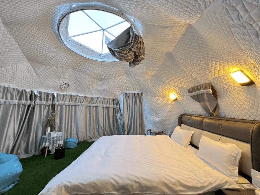星空帐篷白天可时租,晚上可过夜,内设有自助烧烤区,且有浮龙湖鲤鱼等特色菜,吃住娱一站解决,是亲子游和情侣出游的好去处。