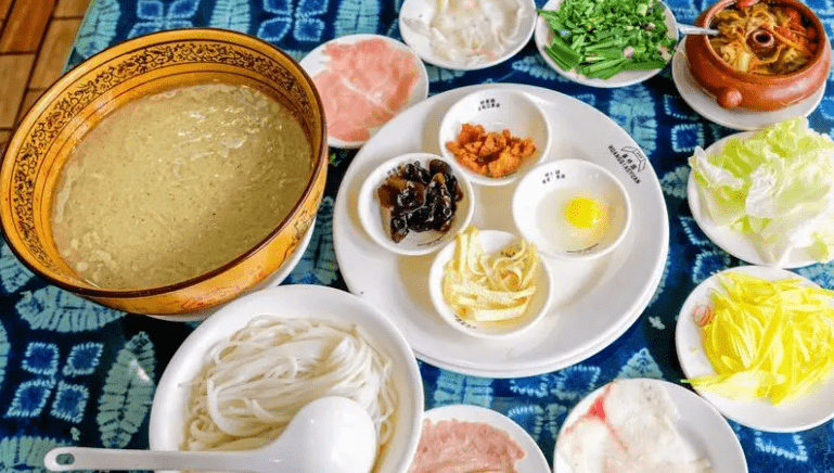 过桥米线是云南最具代表性的一道美食,它起源于云南的中甸县。精选的鸽子蛋、肉片、蔬菜等配料,加上鲜香的高汤,热气腾腾地浇在薄如纸的米线上,令人垂涎欲滴。将米线放入高汤中,顷刻间煮熟,吃起来软糯细腻,口感鲜美。