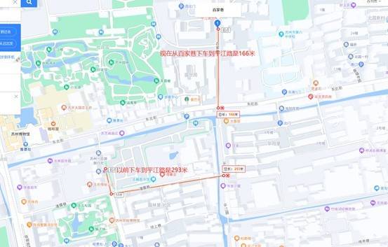 ●新增“百家巷”站点,游客下车后到平江路,步行距离从原先300米缩短至100多米。