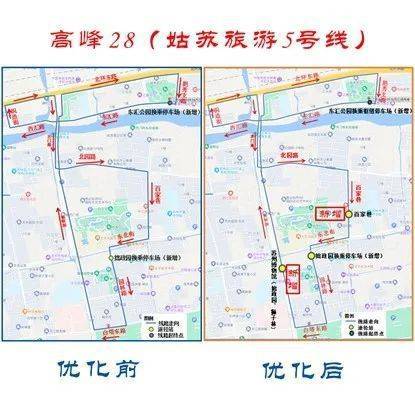 出行提示!日前,苏州公交高峰28号(姑苏旅游5号线)2.0版本上线!线路具体调整公告如下