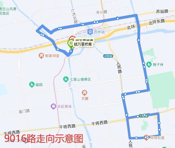 9016路可接驳换乘,轨交2号线“苏州火车站”站、轨交4号线“察院场”“乐桥”站。
