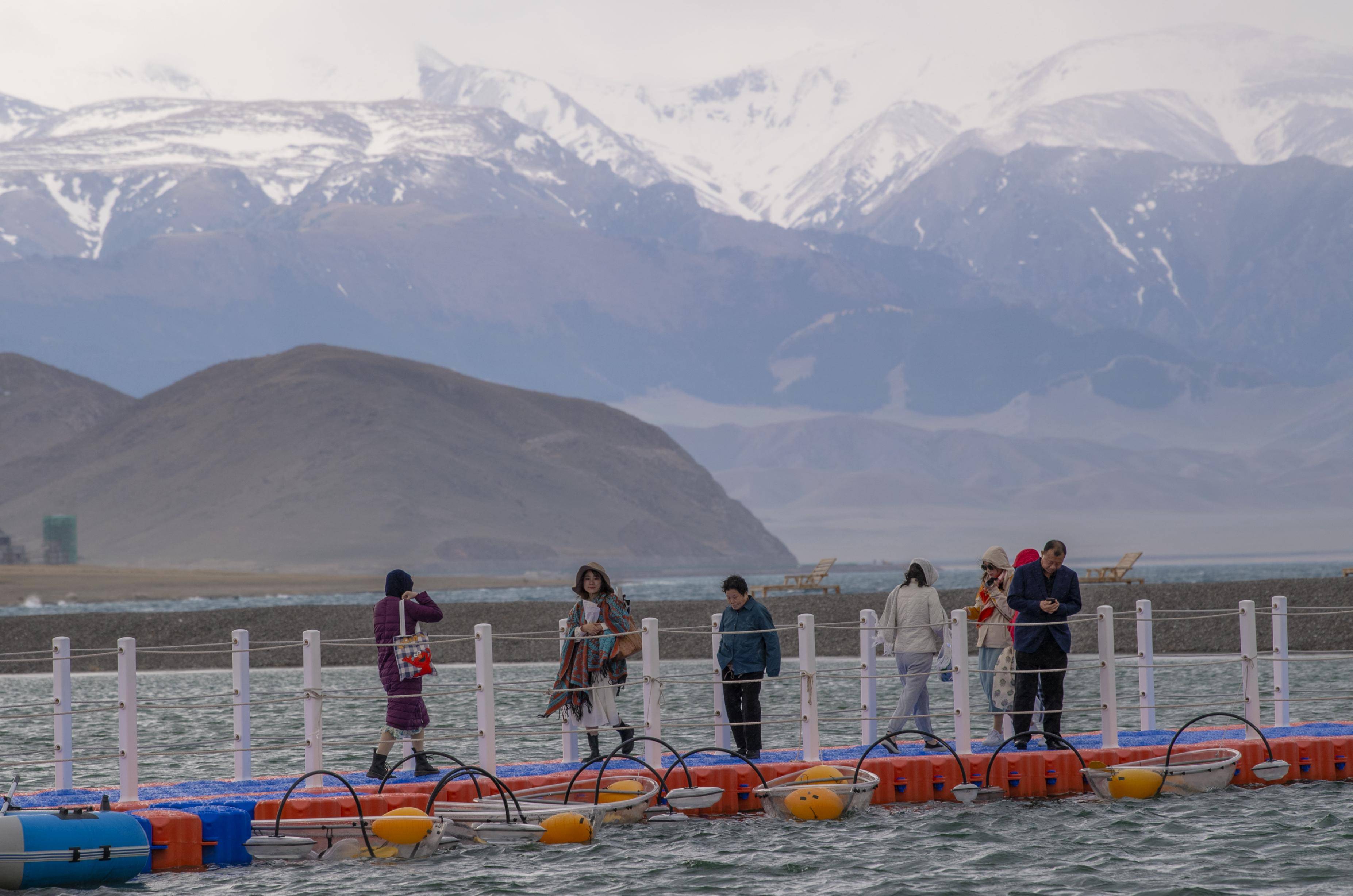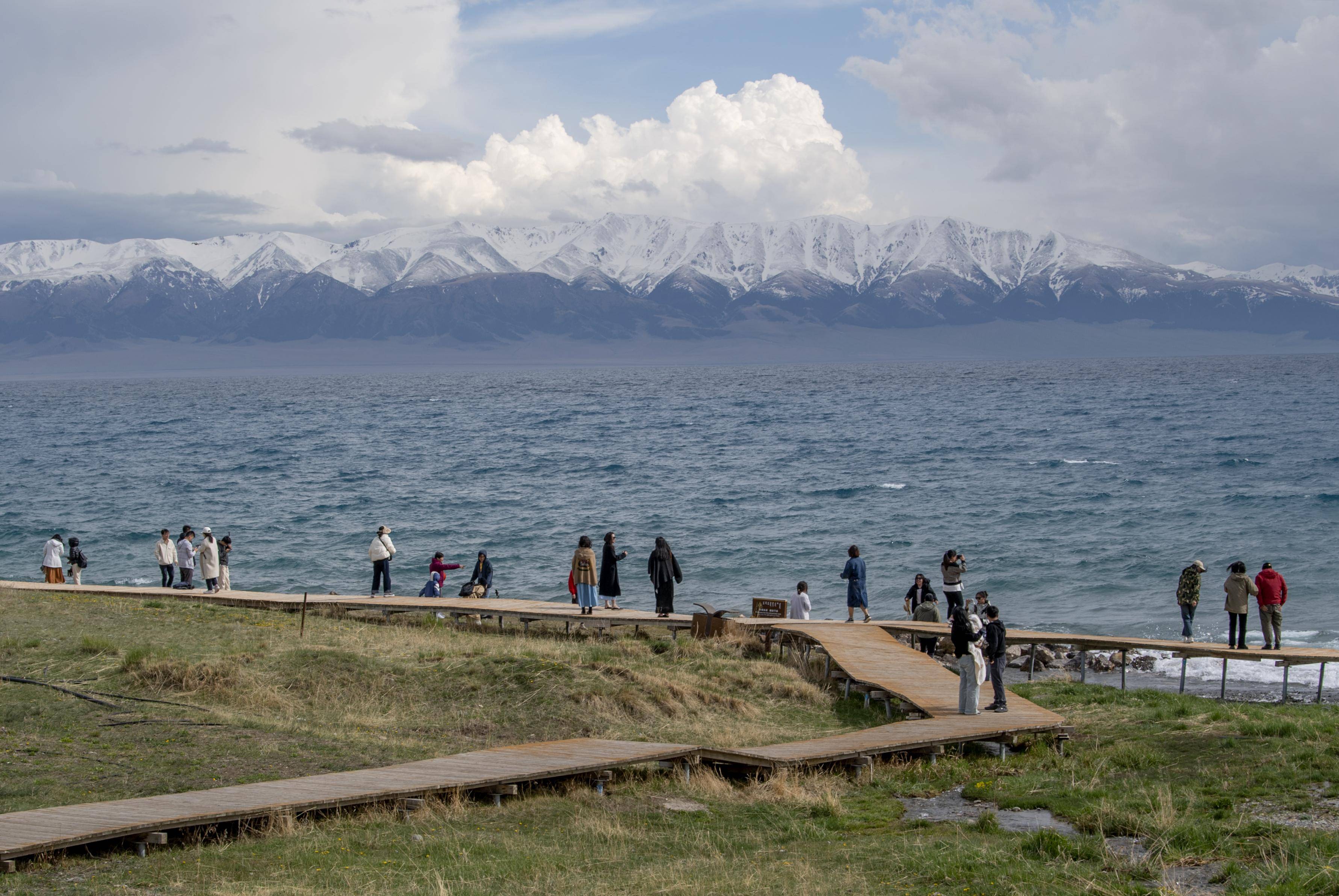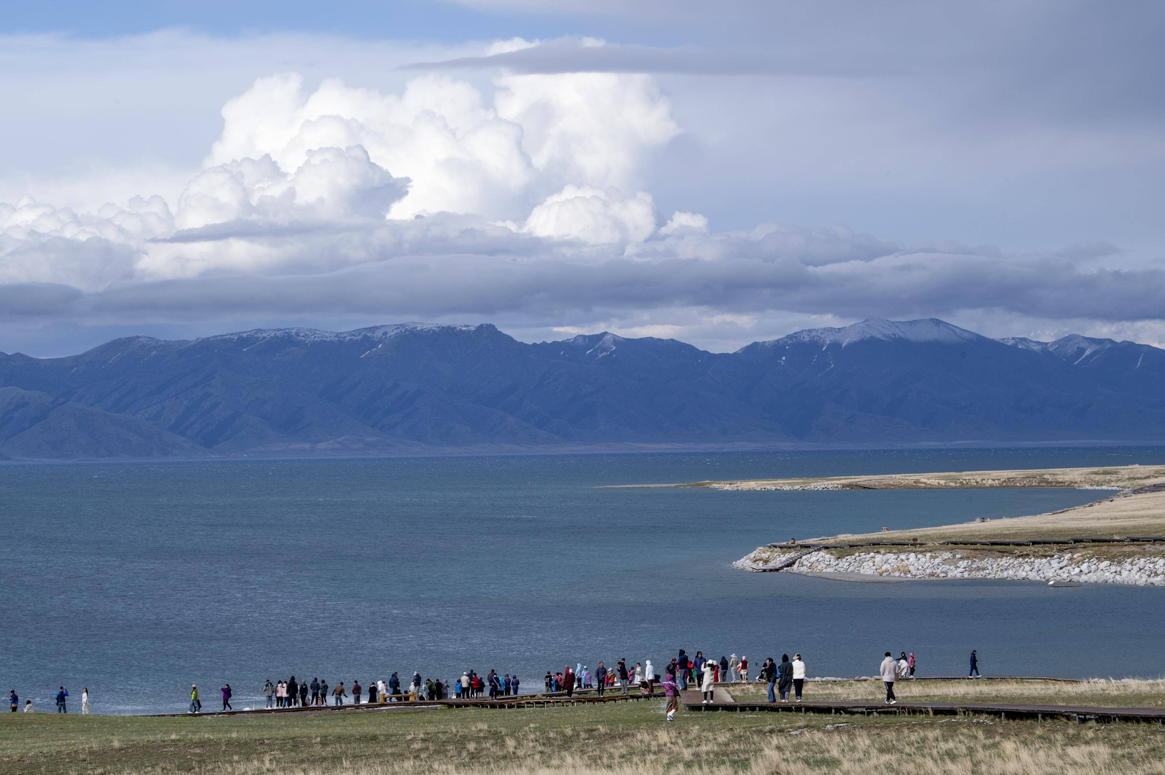 5月21日,游客在新疆赛里木湖景区观光。 新华社记者 郝昭 摄
