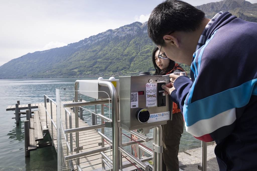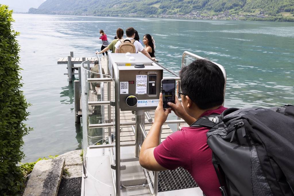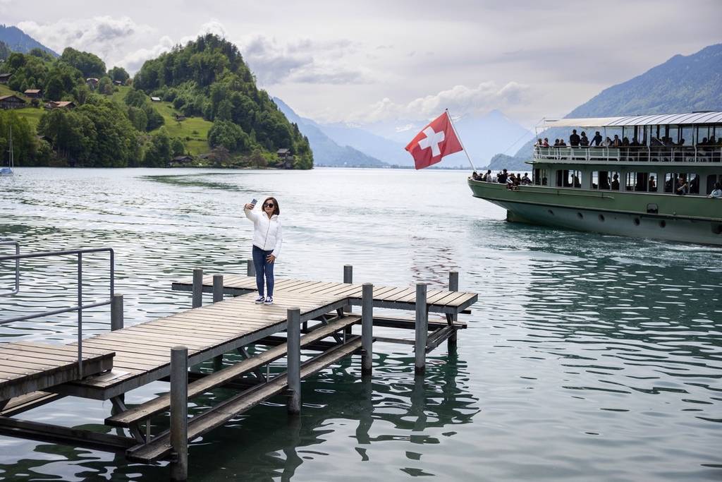 瑞士伊瑟尔特瓦尔德,韩国游客支付5瑞士法郎后登上码头。