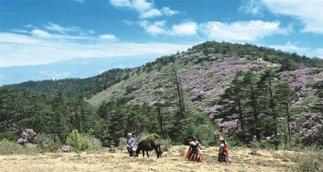 五月,楚雄州大姚县百草岭,连片的杜鹃花盛放,绚烂花海形成一幅气势恢宏的画卷,在崇山峻岭间绵延百里,十分壮观。