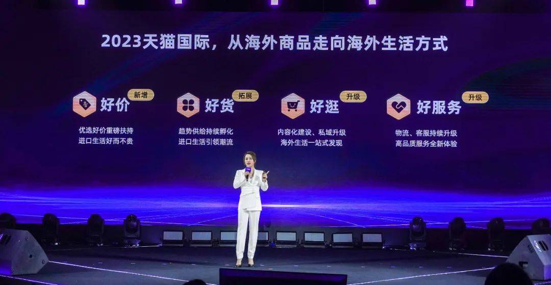 种种迹象都在表明,全“新”的天猫国际“有备而来”。在大会上,天猫国际公布了新业务策略,聚焦“好价、好货、好逛、好服务”,以更好的服务满足用户需求。2023年,天猫国际不仅将继续带消费者发现海外新品,也将让消费者体验更多海外生活方式。