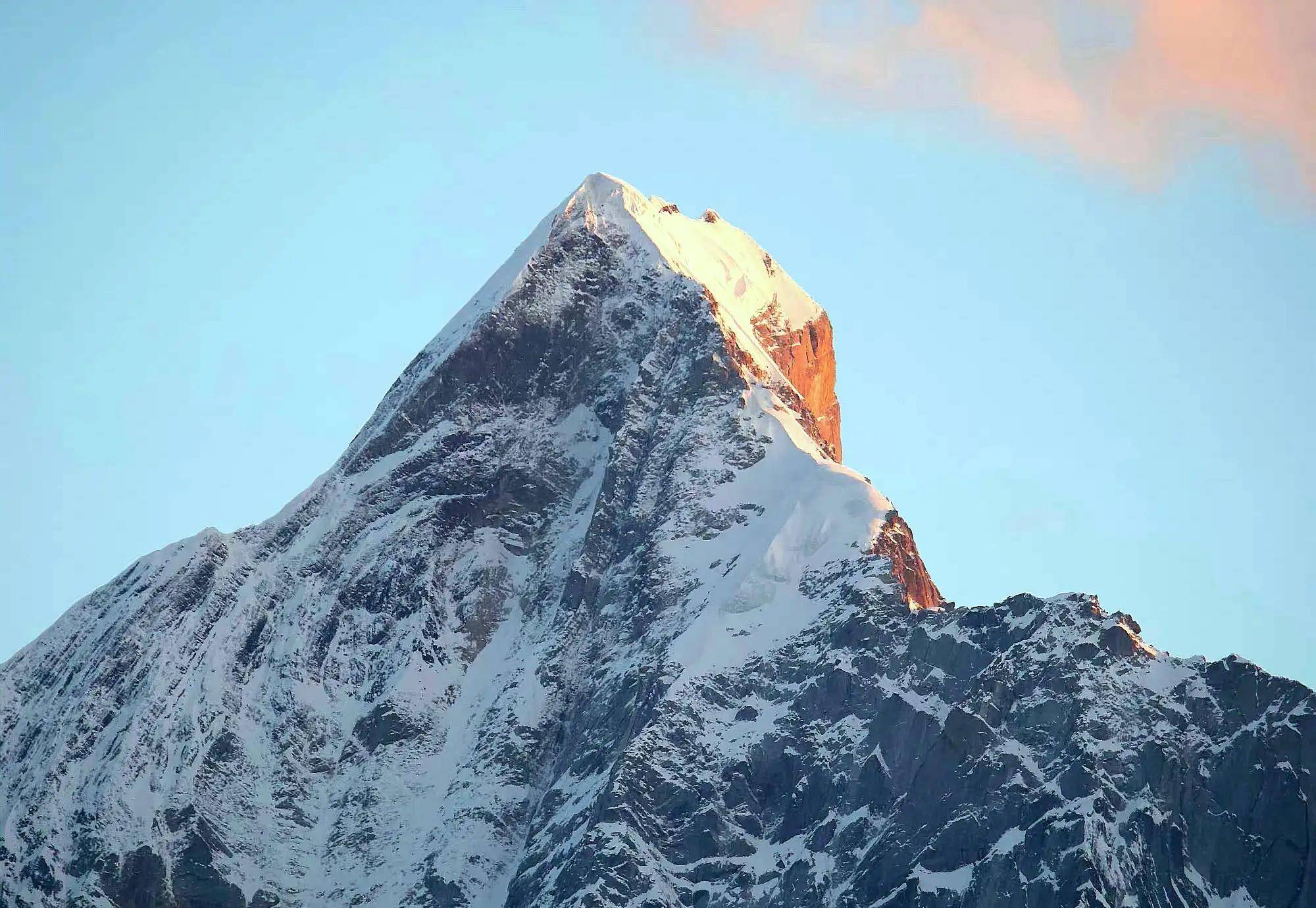 南迦巴瓦峰位于我国西藏林芝市境内,南迦巴瓦峰,海拔高度7782米,地处喜马拉雅山脉、念青唐古拉山脉和横断山脉的交汇处其巨大的三角形峰体终年积雪,数十条冰川绵延在山谷中,耸立陡峭的山峰,地震雪崩的频繁发生,导致它的攀登难度是世界首屈一指的。早在1960年就有南迦巴瓦峰的攀登记录了,但是都未成功过,直到1992年中日联合登山队才成功登顶。