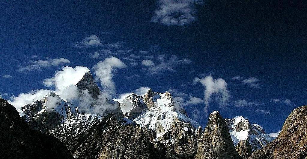 拜塔布拉克峰,海拔7285米,位于巴基斯坦北部,属于喀喇昆仑山脉,是世界第87高峰,以“食人魔”的名字被人们所熟知,是世界上攀登难度最大的山峰之一。尽管早在1971年就有人初次尝试攀登拜塔布拉克峰,1977年7月13日首次登顶,但直到2001年7月21日才第二次登顶。拜塔布拉克峰的第三次登顶是在2012年8月21日。