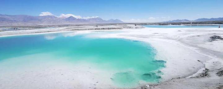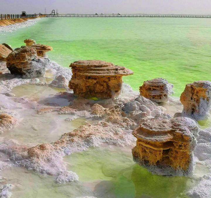 察尔汗盐湖的湖水是碧绿,拍照非常惊艳。