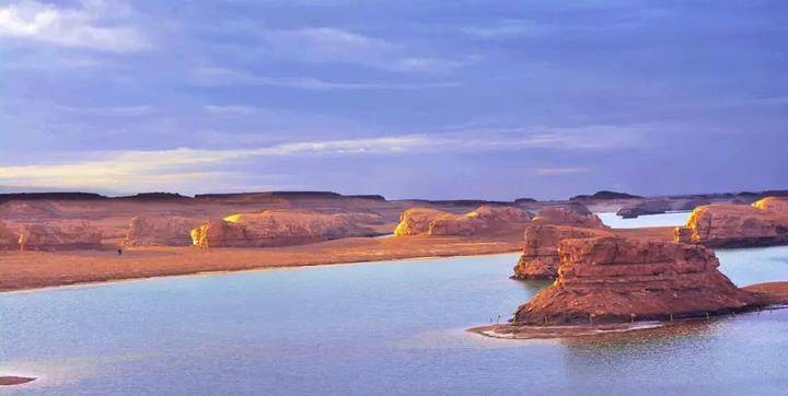 乌素特水上雅丹地质公园被称为中国西部的千岛湖,是全球被发现的唯一的水上雅丹地貌群。