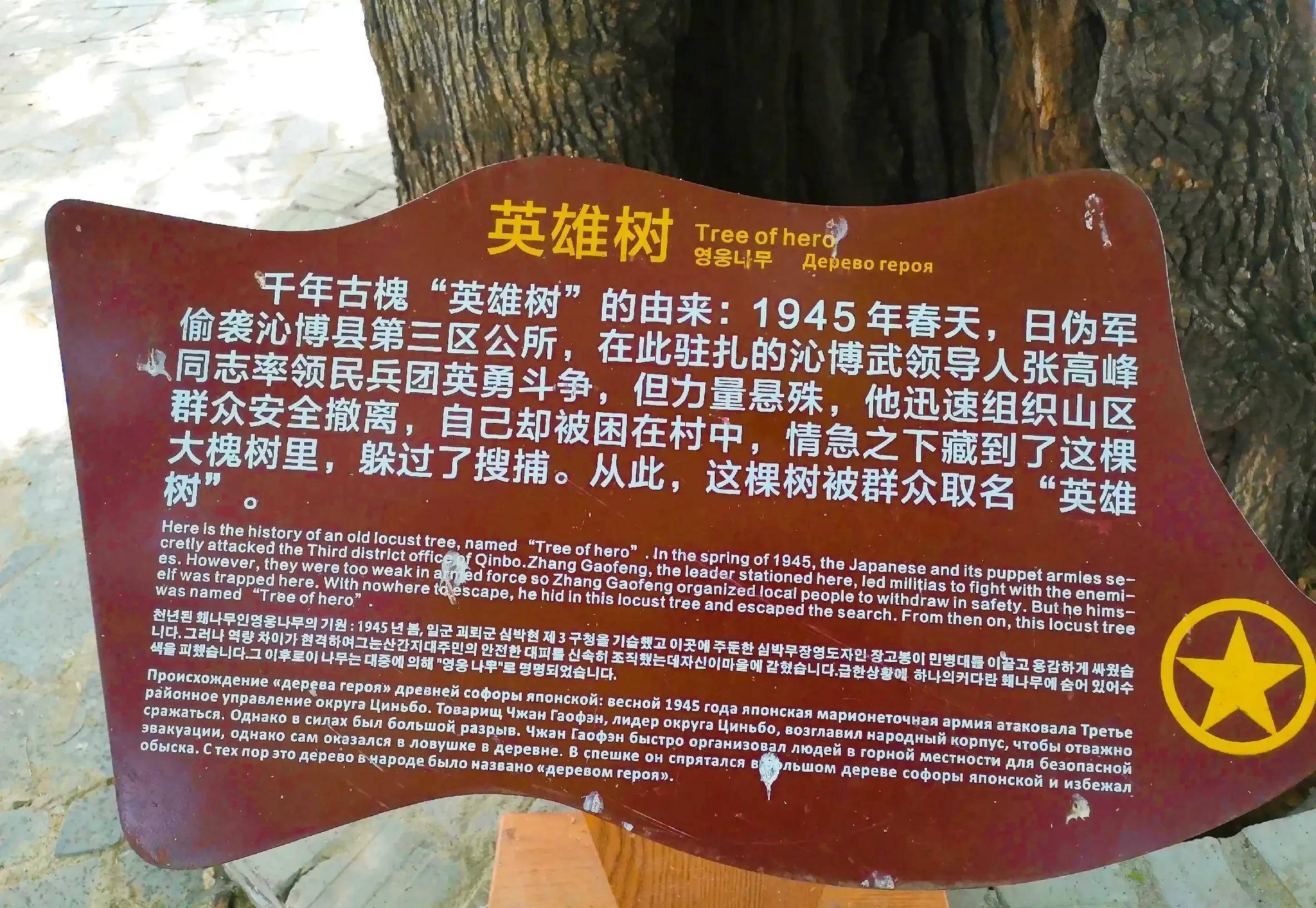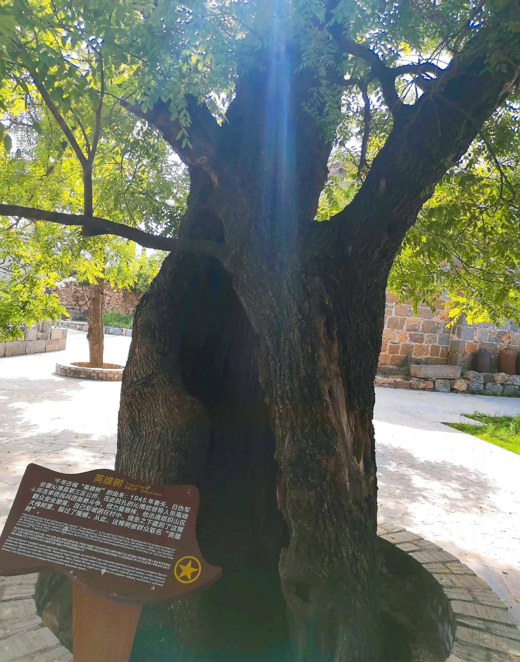 村中的那棵千年老槐树,名为“英雄树”树干已中空,却是枝繁叶茂。