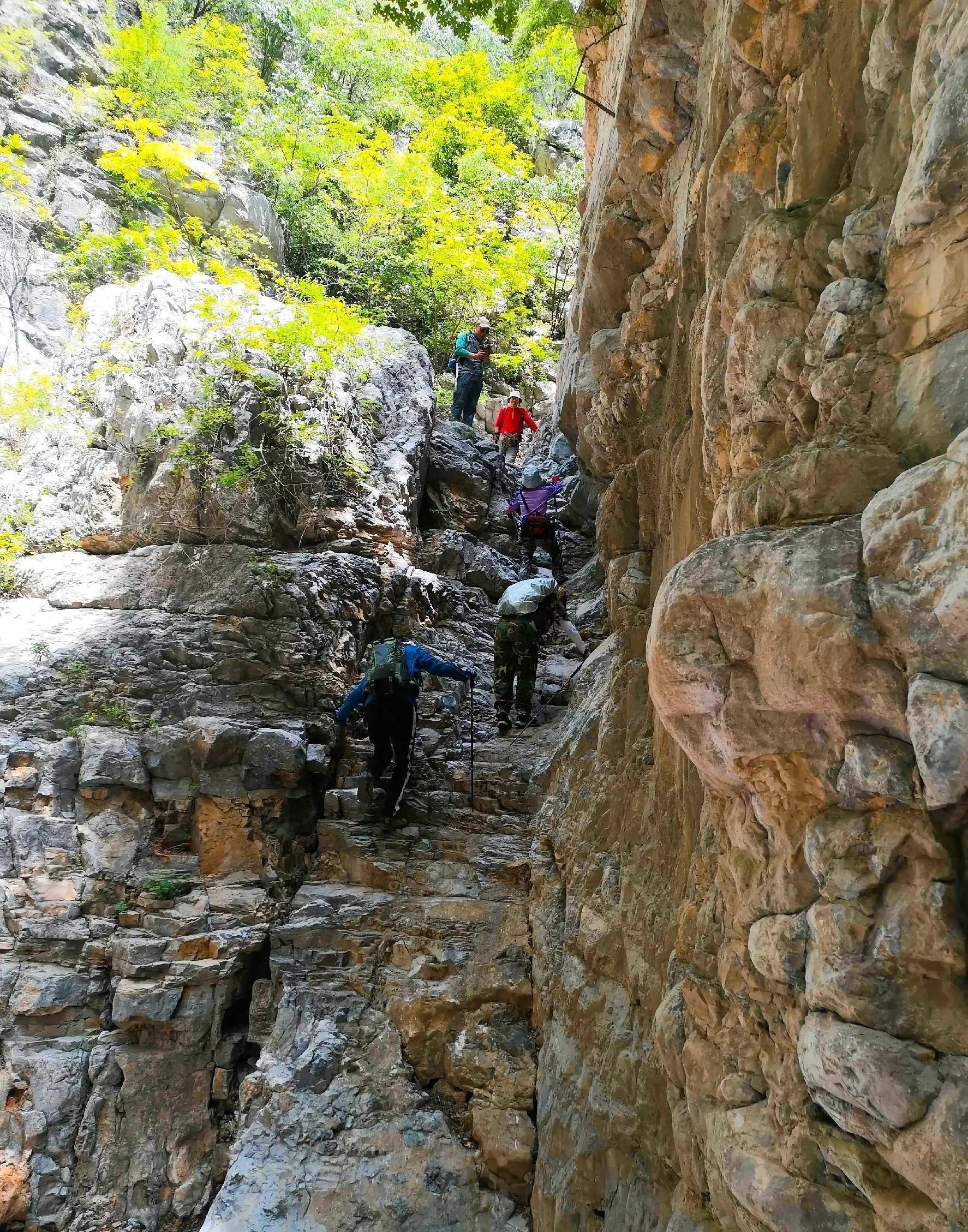 9:50分下到谷底,集体休息,随后向右顺峡谷河道走,隐蔽在深山中的峡谷,仍保持着原始生态,还好河道没水,比较好走,边走边看,这里的景色很治愈。
