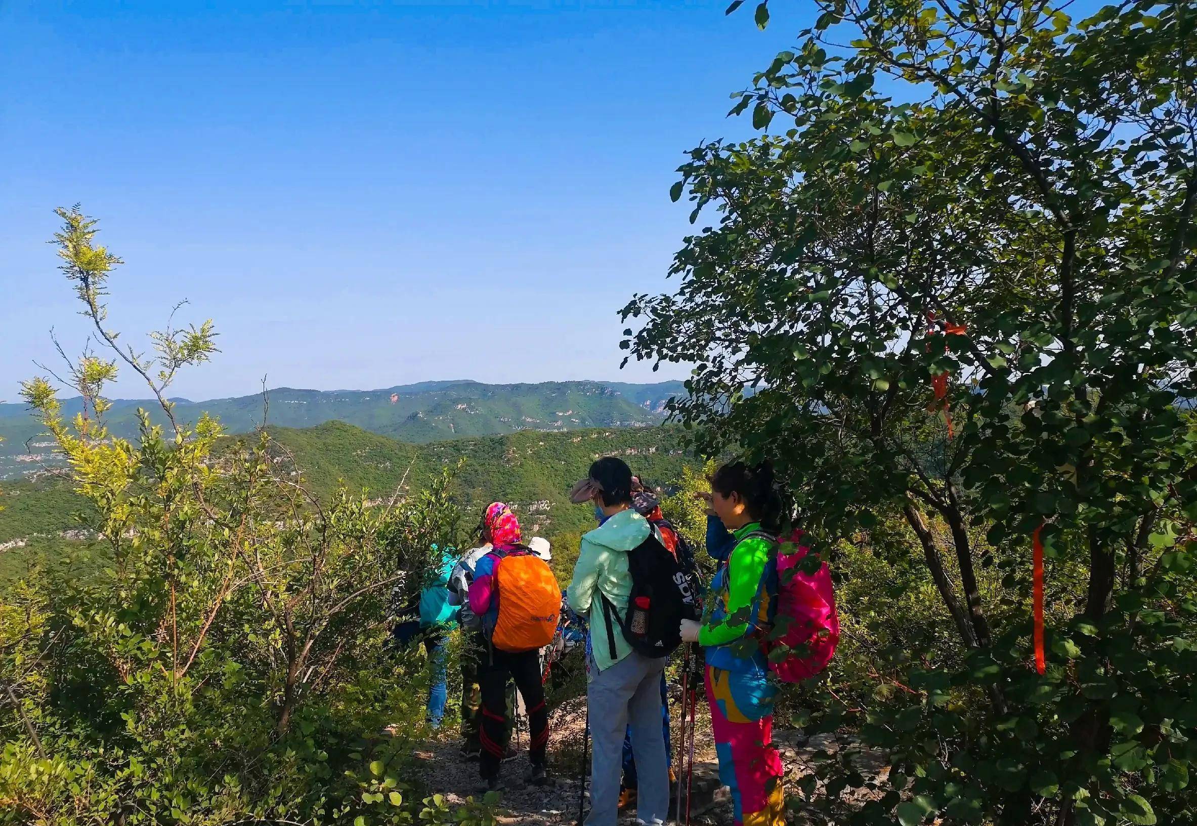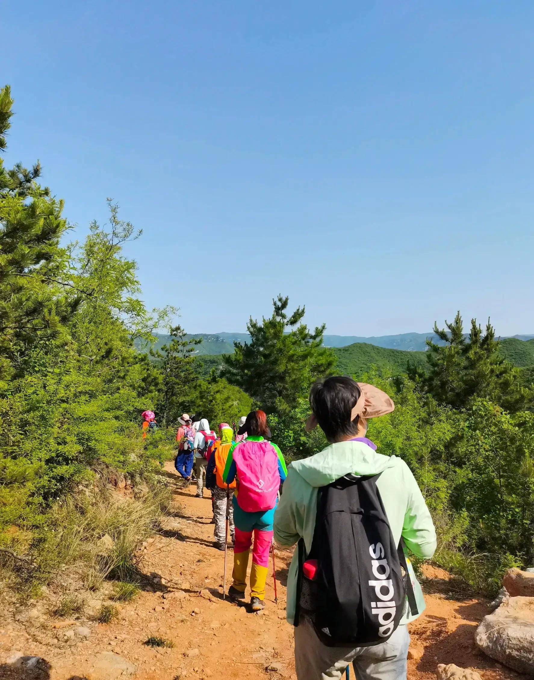 8:20分大部队一路向西,太阳已经升的老高了,看晴空无云,又是一个大热天,满山满眼绿色抢先入眼,延绵的山脉尽显生机勃勃。