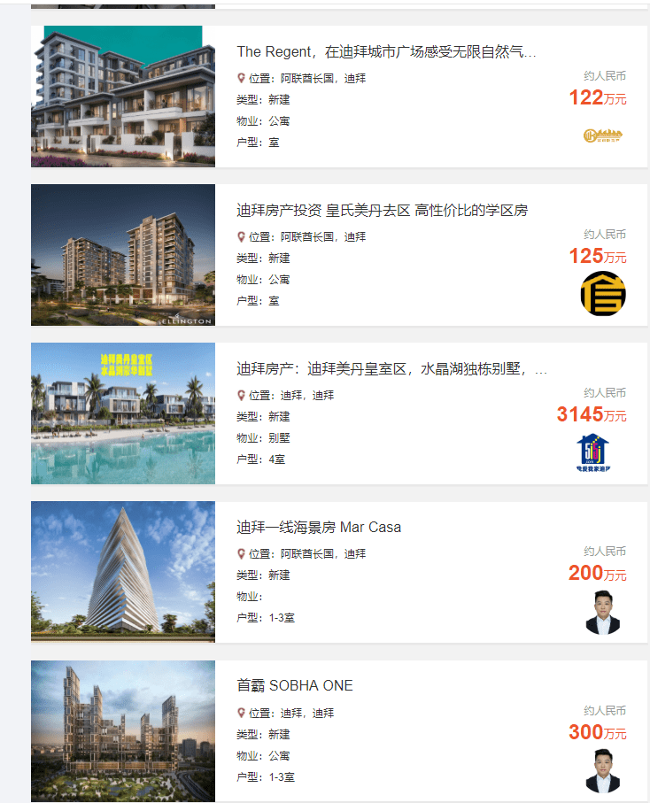 “在房价方面,以比较火热的区域美丹区、Marina区、云溪港区域来看,美丹区的均价在4到5万元/㎡左右,云溪港在5万元/㎡左右,Marina 在10万元/㎡左右。著名迪拜塔公寓均价在8万元/㎡左右。迪拜的房价远低于国内动辄10万元平米的一线城市房价。“