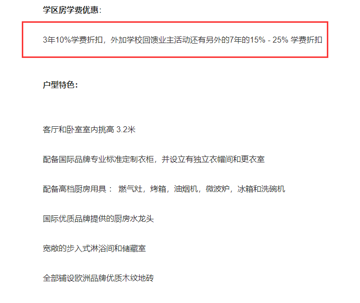 搜狐财经在浏览外房网迪拜置业一栏时发现,肯西顿水郡 Kensington Waters项目标注着高性价比学区房,总售价约125万人民币,且明确写着为永久产权,且有学费折扣政策。