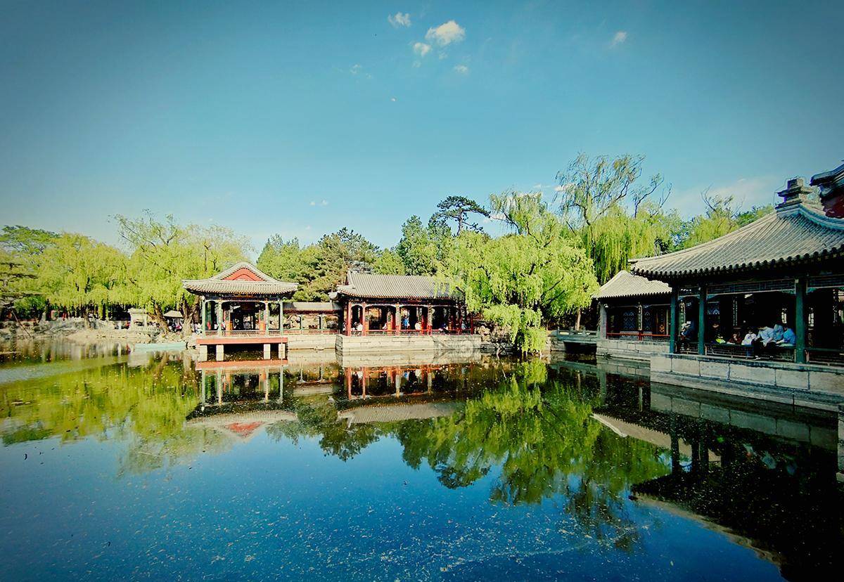 进入谐趣园会被其楼阁和水的氛围所吸引,在天气晴朗的时候拍对称构图效果还不错。