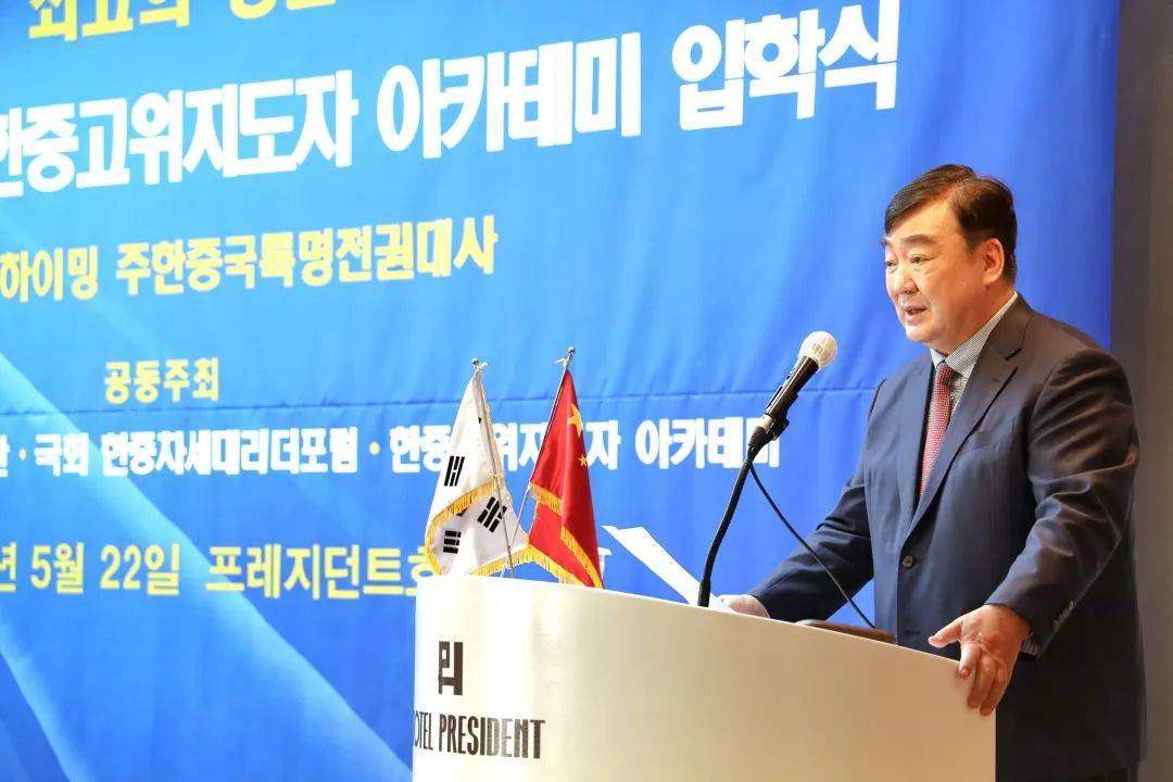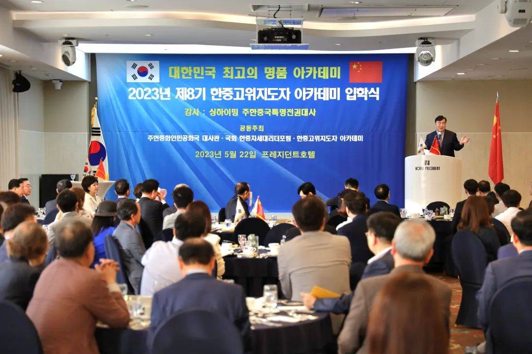 5月22日,邢海明大使应邀为第八届“中韩知名人士教育培训课程”授课,揭批七国集团(G7)以意识形态和价值观为幌子,鼓吹“脱钩断链”、构筑“小院高墙”,肆意干涉别国内政,破坏国际秩序的恶劣行径,介绍中韩经贸合作现状与未来、半岛形势与中方作用,并为下一步中韩关系发展提出建议。21世纪韩中交流协会会长金汉圭、韩国国会议员金斗官、河泰庆、李容镐及来自韩政界、企业界的百余名学员听取了授课。演讲全文如下: