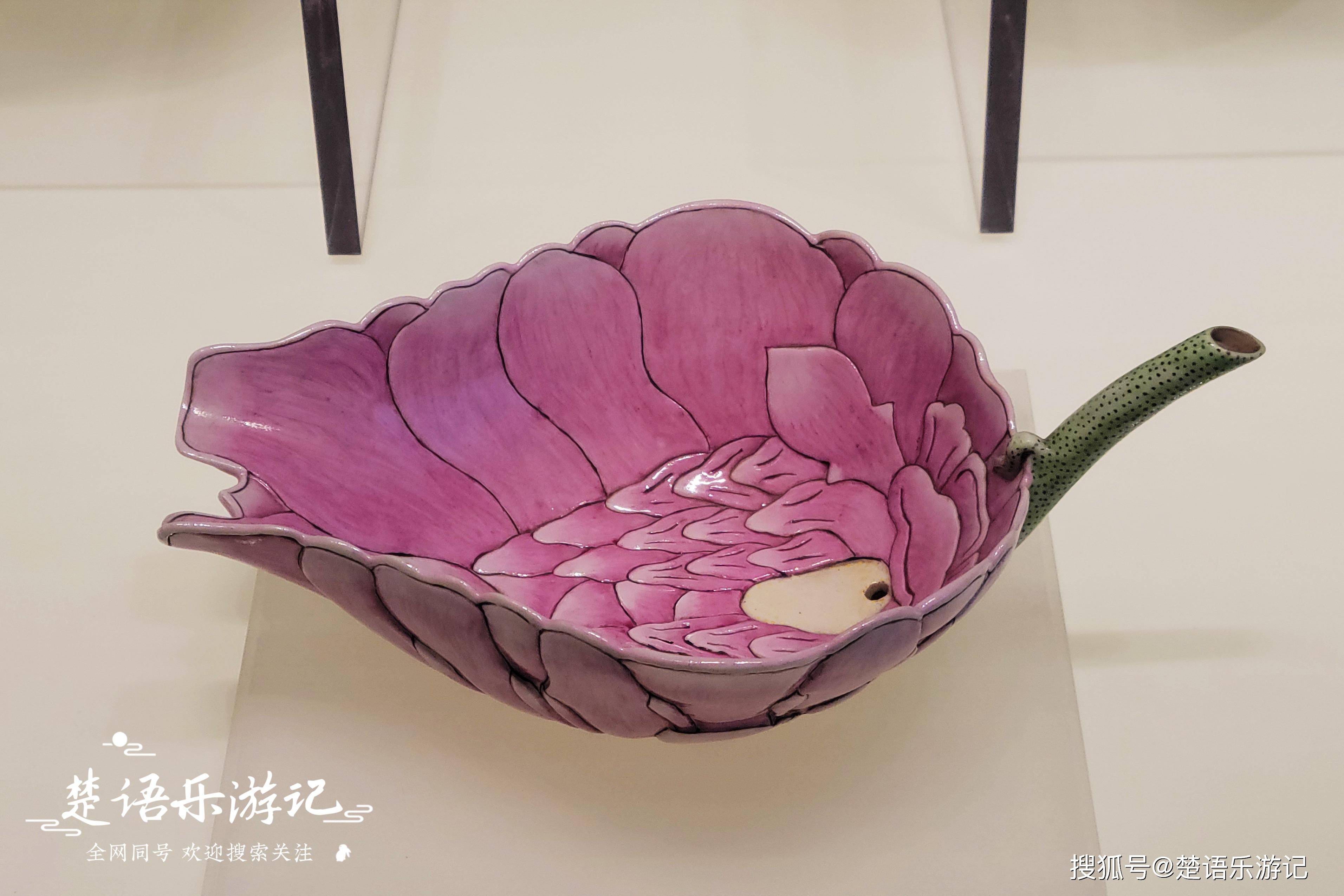 这里的黄釉绿彩海水纹瓷盘、粉彩荷花瓷吸杯、青花瓷碗等色彩各不相同,但是都很精致,工艺之纯熟,造型之完美,色彩之艳丽,让人叹为观止。