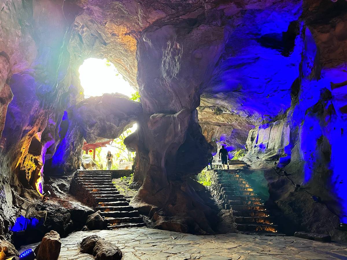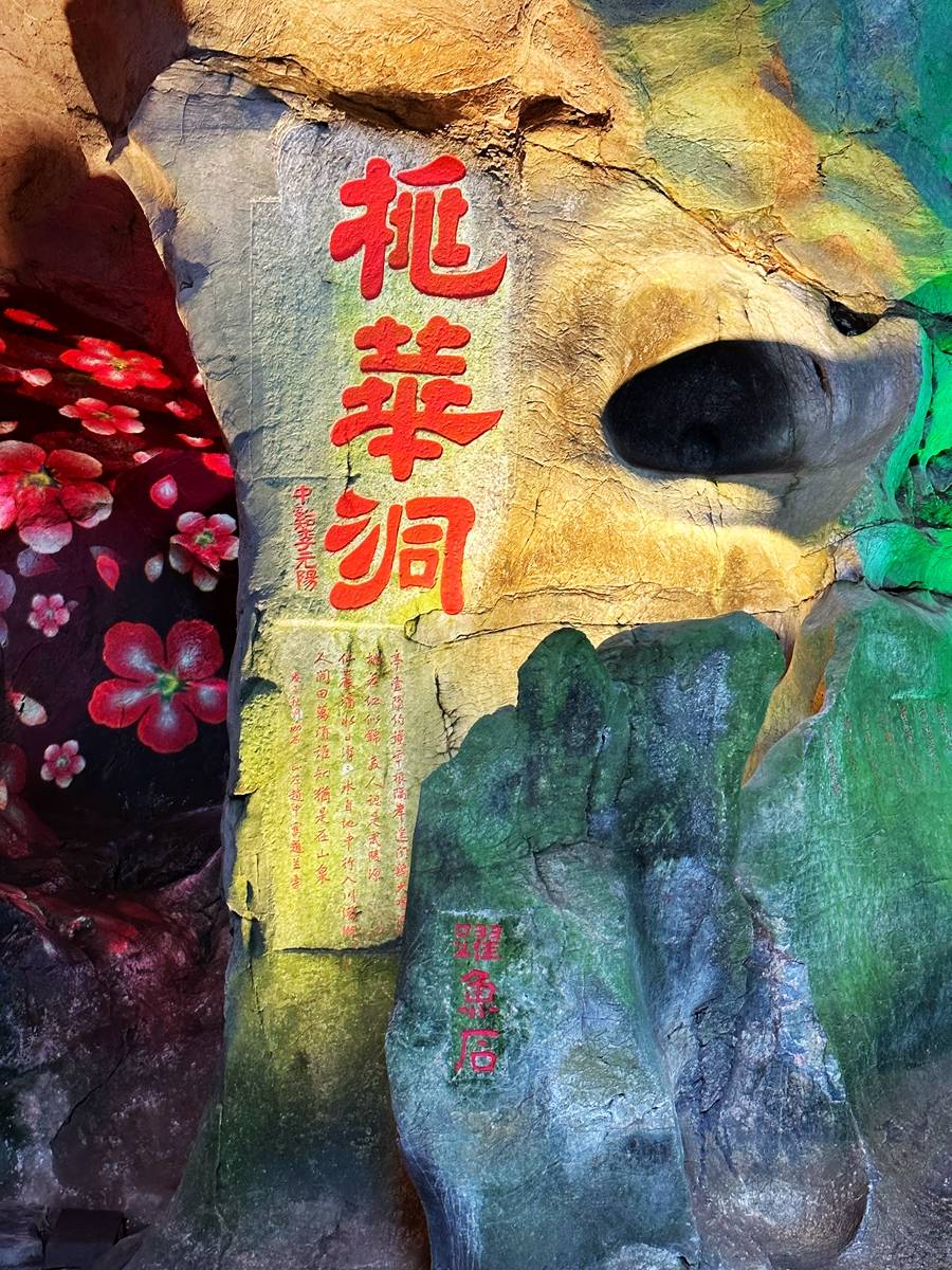 来到玉虚洞的明洞,有种豁然开朗的感觉,这里明亮不燥,怪石嵯峨,尤其是桃华洞,可容千人,石色晶莹斑斓,有仙桥、佛头岩、祥云岩、隐鹊岩、晃石、跃鲤石等景观,其中“天鼓”和“虚鸣窍”最妙,用芦扫轻拍,即发出巨响,经久不绝。