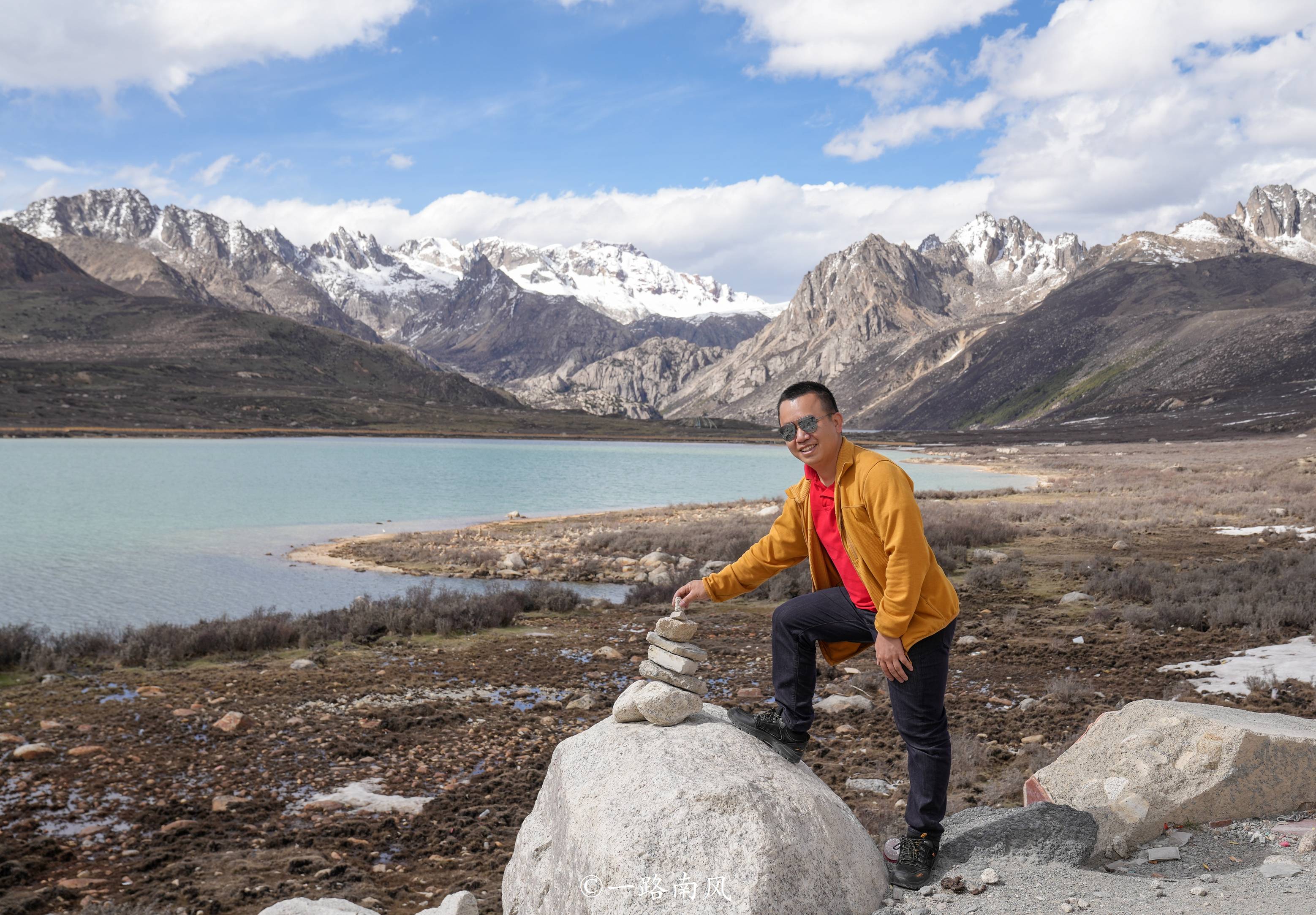 站在姊妹湖边,看雪山映绿水,看蓝天上浮云漫卷,不禁感叹“江山如此多娇”。